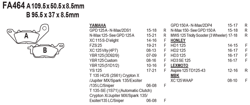 Yamaha YBR 125 N-Max GPD125 150 Crypton HONLEY 125 HD1 HD2 HD3 LEXMOTO
