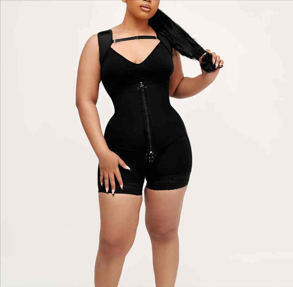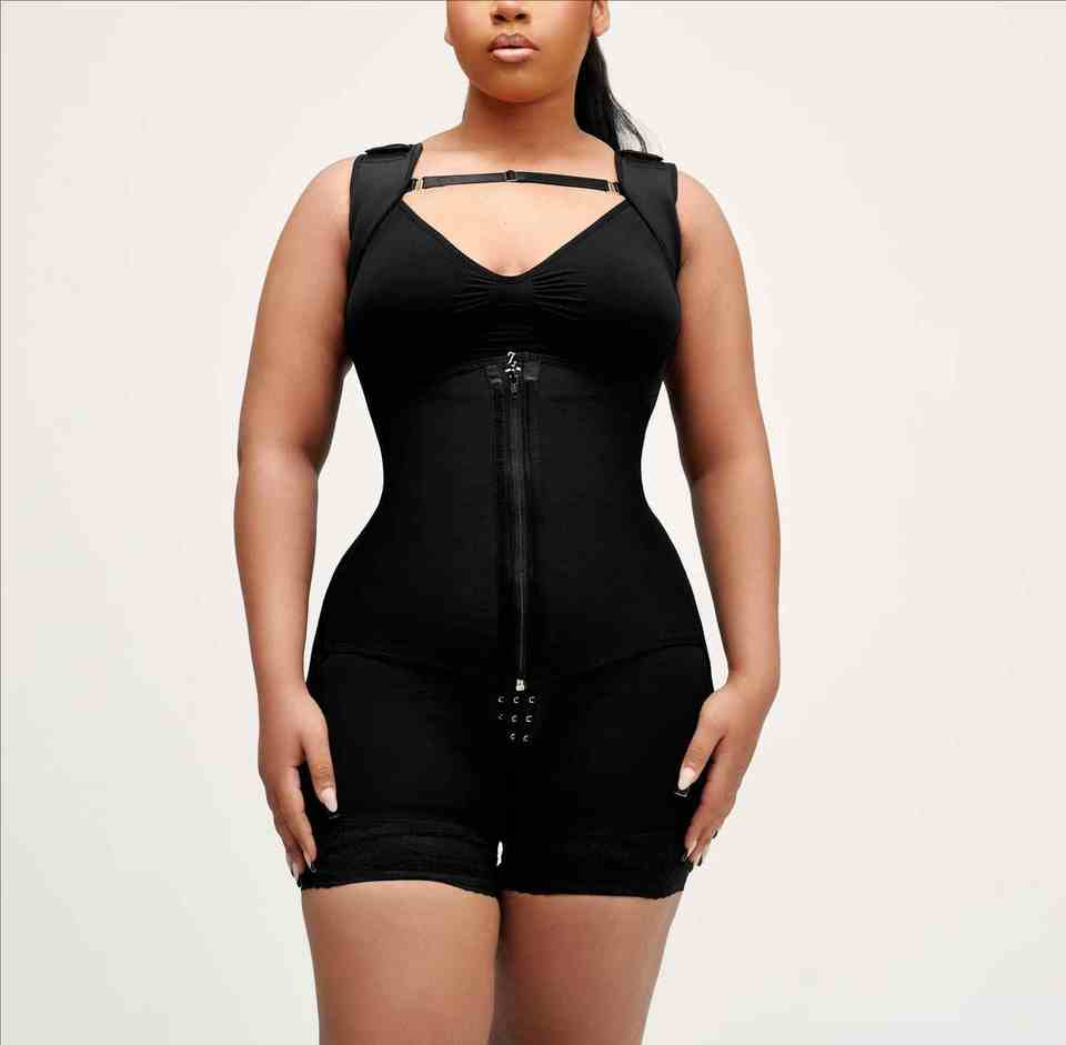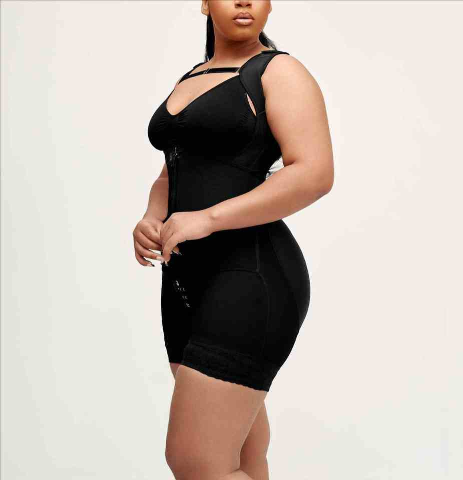 Body de Tanga acanalado con cremallera frontal Ropa moldeadora de longitud media Recuperación postoperatoria Cirugía plástica Faja colombiana