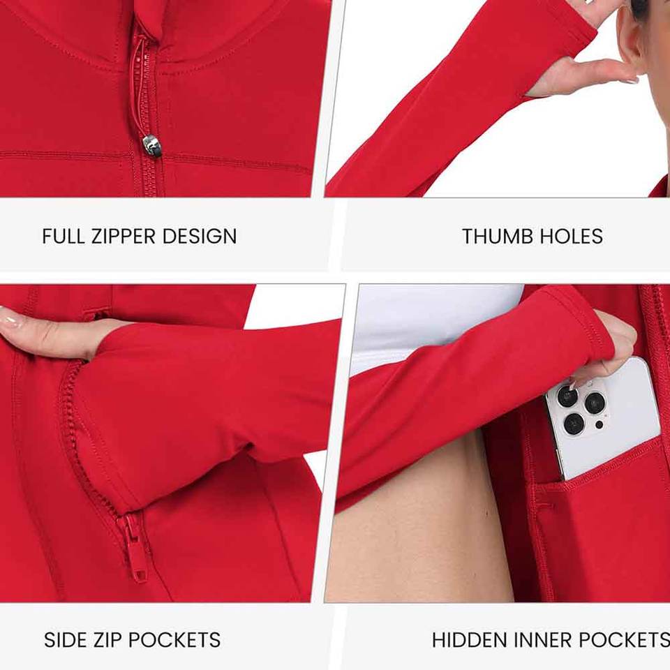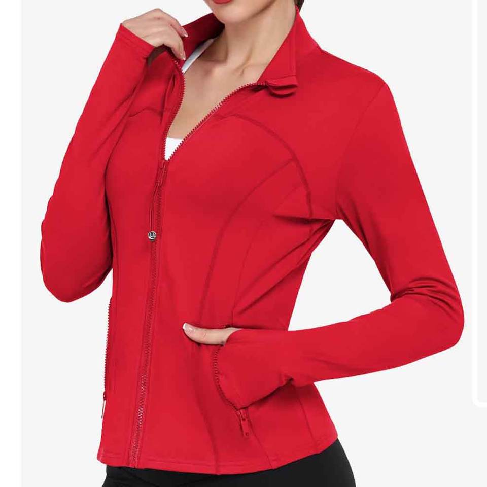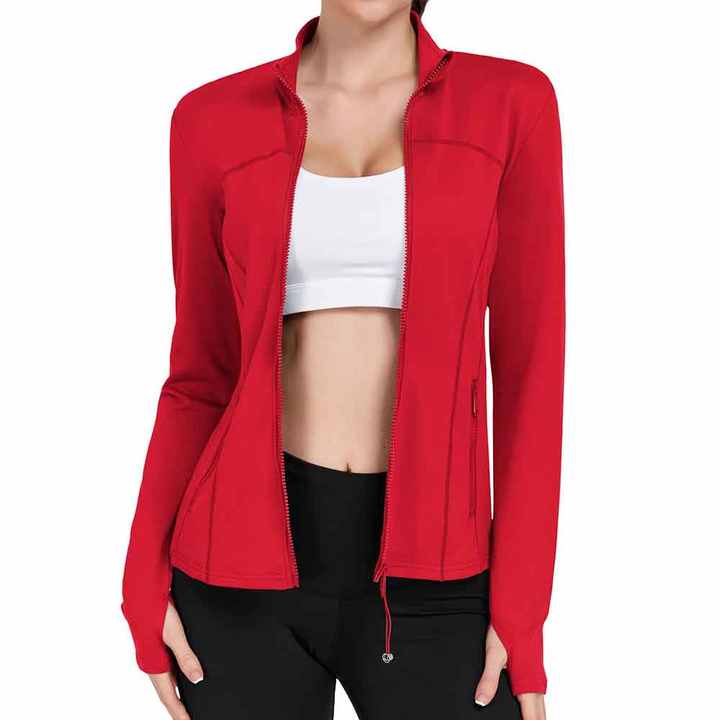 Chaqueta deportiva con cremallera frontal para mujer, cuello alto, tela suave al tacto, transpirable.