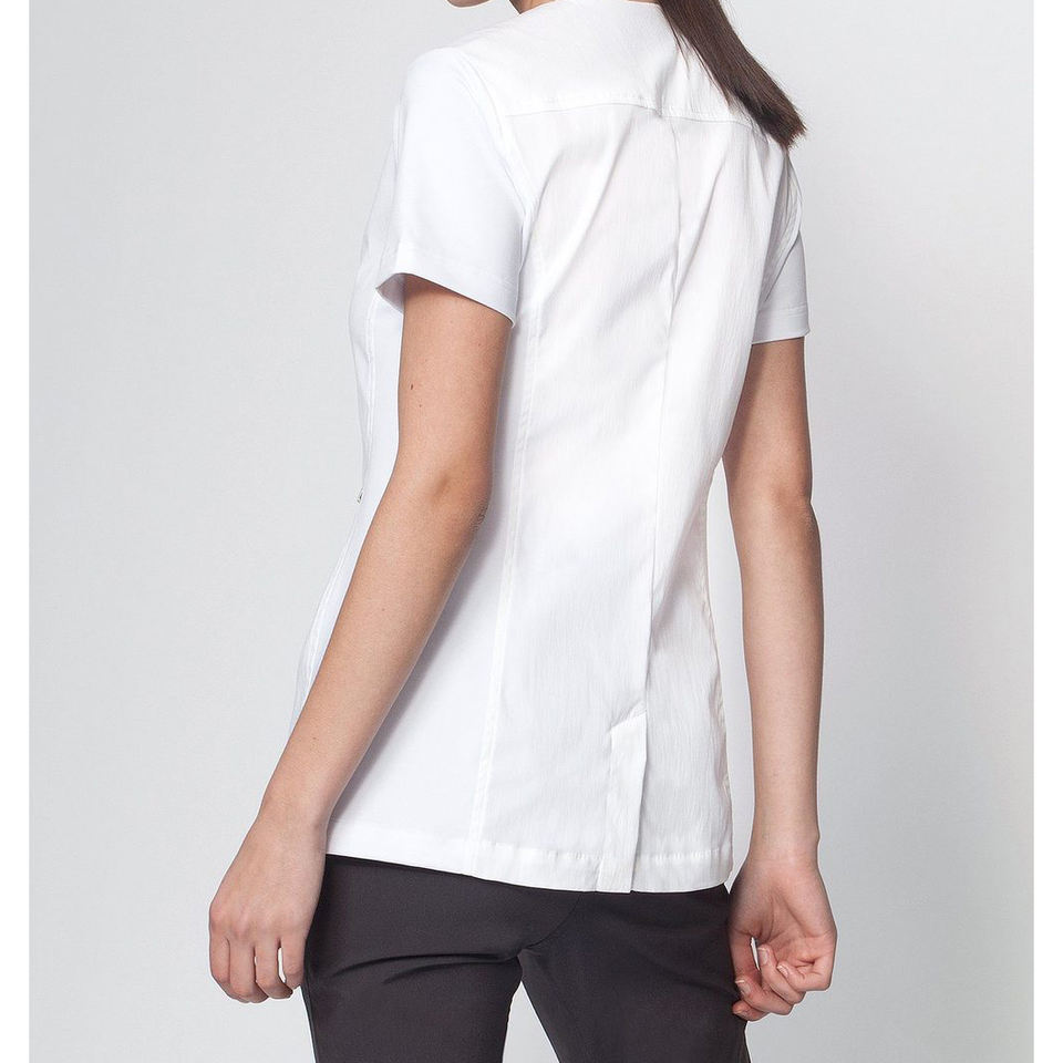 Cremallera frontal de doble extremo, superventas, logotipo personalizado, masaje tailandés de alta calidad, industria de la belleza, salón de trabajo, Túnica para mujer, uniforme de Spa