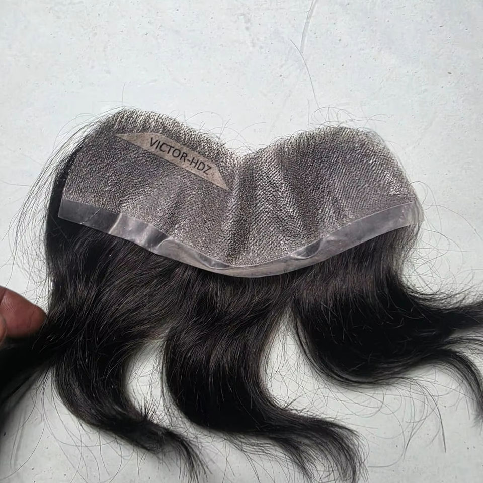 Peluca con malla frontal para hombres, modelo Q6, piezas de cabello superior, Tamaño 7x10, Color Natural, diseño correcto, hecho de cabello humano Natural, técnica de PU