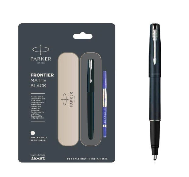 Frontier Blue Ink Color CT Frontier Matte Black Chrome Trim Roller Ball Pen para uso corporativo y profesionales