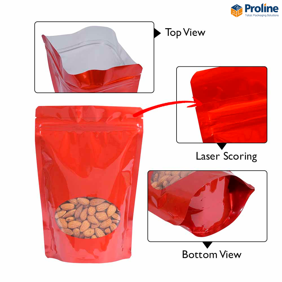 Frost Matte Mylar Stand Pouch Cremallera Papel de aluminio personalizado Doy Pack Ventana de almacenamiento de plástico de grado alimenticio para embalaje de té Comida para mascotas