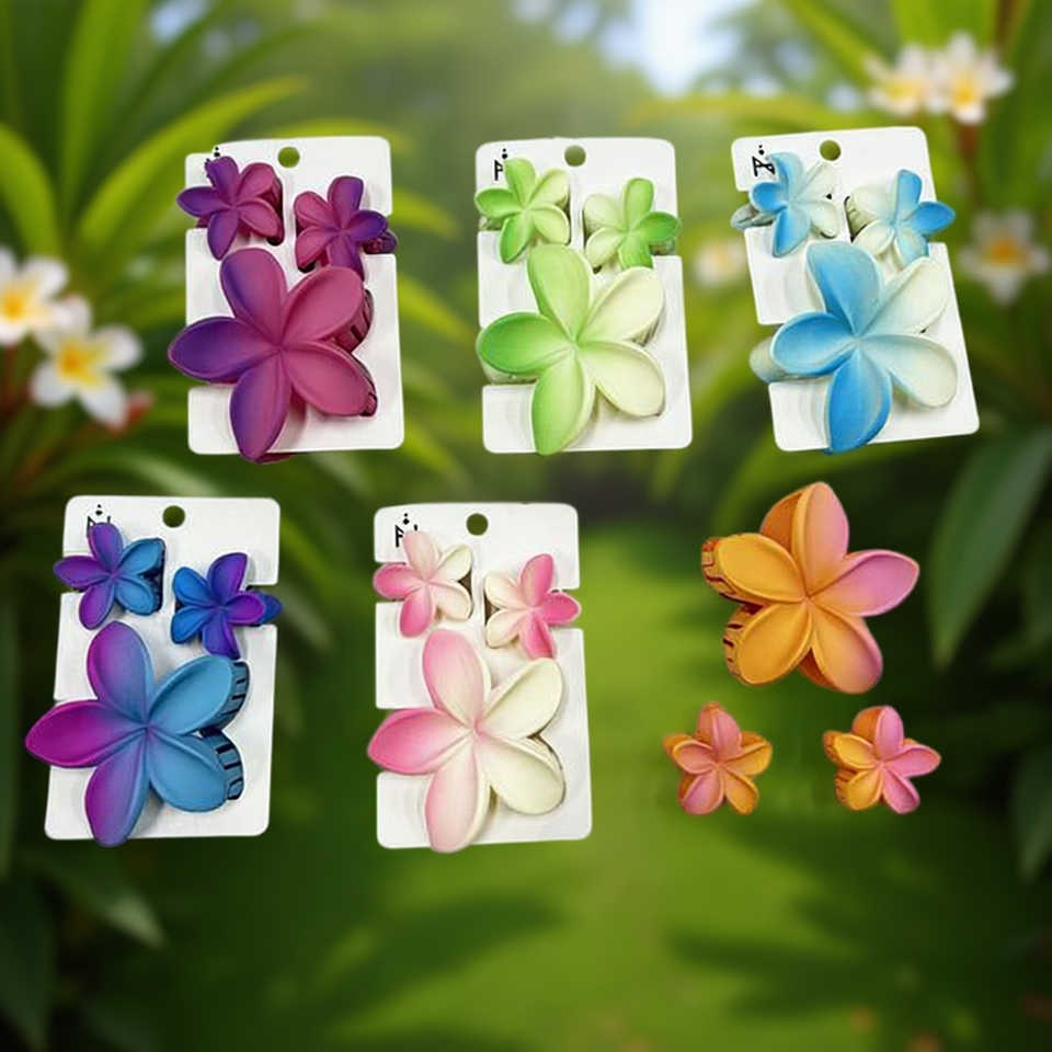 Juego de Tres Pinzas para el Cabello con Diseño de Flor de Frangipani en Degradado Esmerilado de Dos Tonos