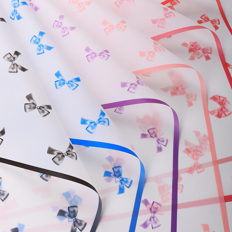 Papel de regalo de flores coreanas semitransparente esmerilado, revestimiento de PE impermeable con lazo para ramos de flores y arreglos de rosas