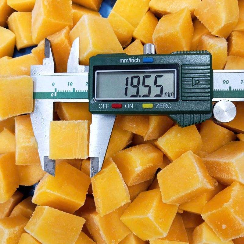Cubos de mango congelados IQF procesados a partir de mango maduro para servicios de catering, repostería, postres y fabricación, origen Vietnam.
