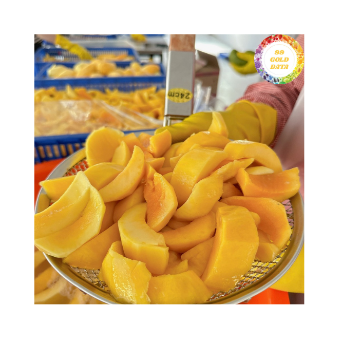 Mango Congelado de Vietnam elaborado con fruta de mango cuidadosamente seleccionada, ideal para fábricas de bebidas, mezclas para postres y preparaciones congeladas.