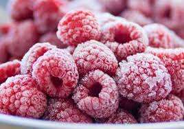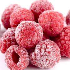 Frambuesas rojas brillantes congeladas, limpias, listas para usar, calidad de exportación, fruta conservada, perfecta para batidos, postres, repostería y a granel.