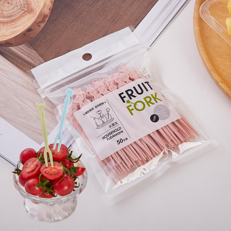 Fruit Fork Set 50 Pcs Disposable Plastic Pink Green Blue For Party Home Use Vegetables Salads Cakes