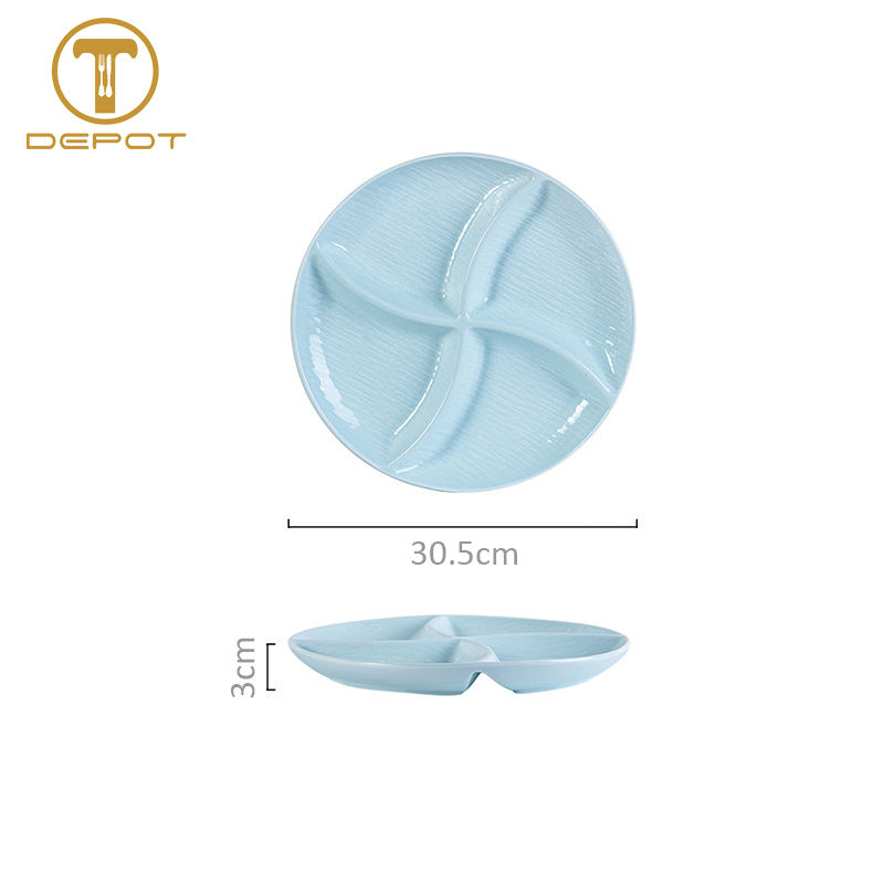 Nombre del producto:Bandeja de fruta dividida en 3 compartimentos cuencos de cerámica set fo 4
