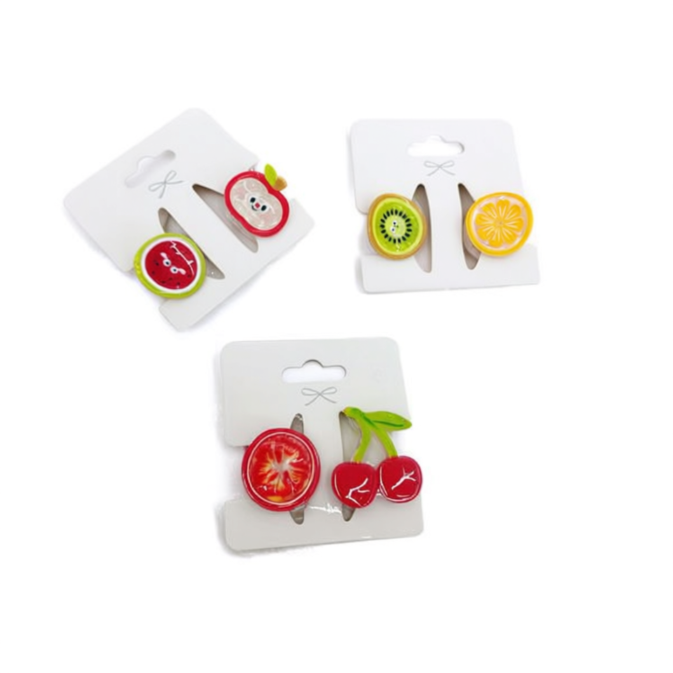 Pinzas para el cabello de la serie Fruit, pinzas laterales pequeñas, 1200 unidades por caja, diseño de frutas coloridas para mujeres y niños