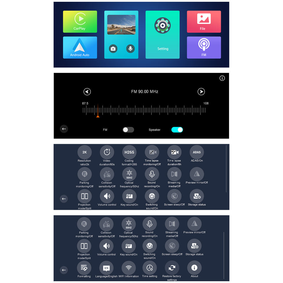 Grabación en bucle, WiFi, Detección de movimiento, GPS, Batería, ADAS