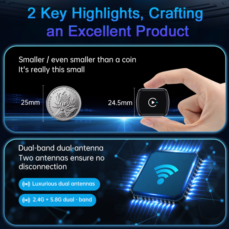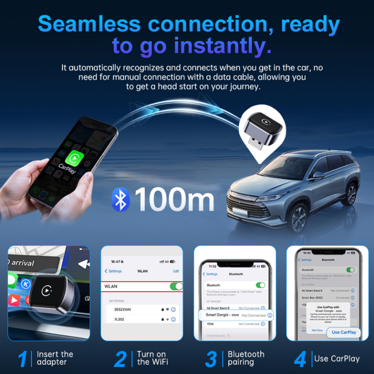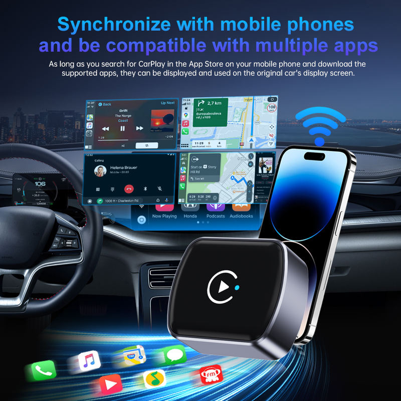 Adaptador Inalámbrico para Auto Fuallwin, Mini Adaptador Inalámbrico para Vehículo Compatible con Apple iPhone, Samsung y Teléfonos Android