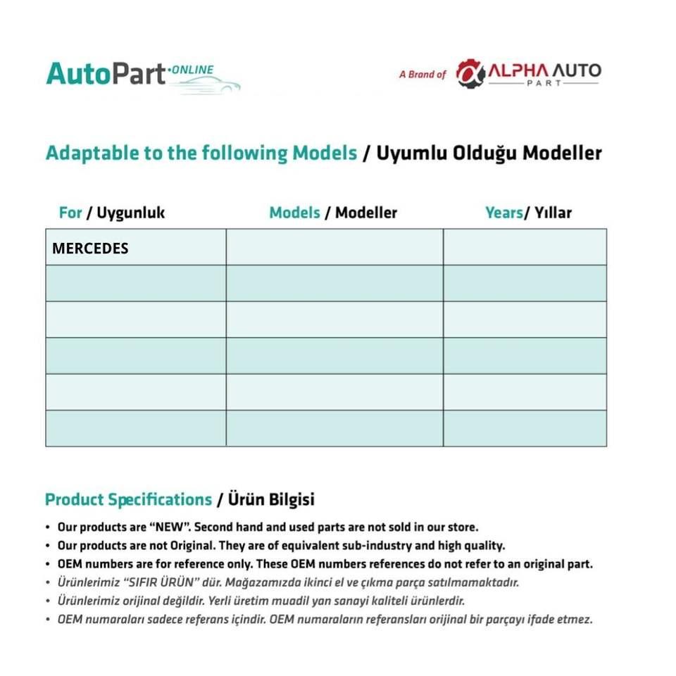 Marca:Mercedes Compatible Spare Parts