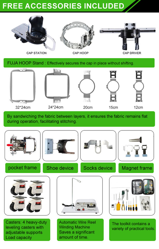 Auto Functions:Auto thread trimmer,auto color change,auto thread break detection