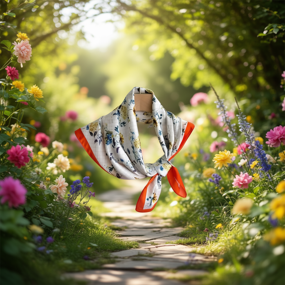 Pañuelo Cuadrado Pequeño Fulars 70x70cm con Diseño Floral Oculto para Mujer, Accesorio de Moda