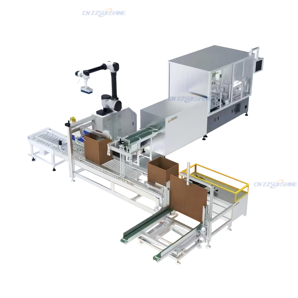Línea de Paletización Automática Completa Integrada con Sellado, Flejado y Paletización de Bolsas/Cartones de Alta Precisión