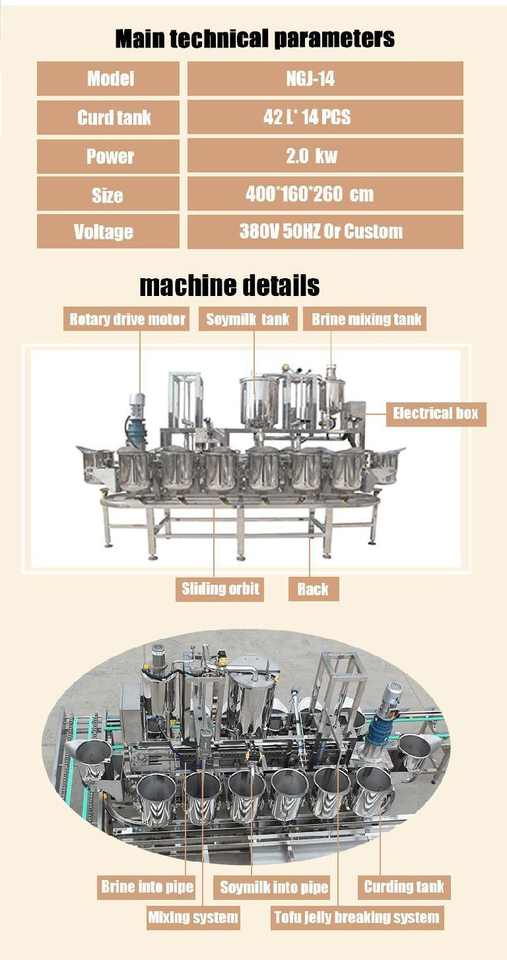 Máquina Automática de Rotación Continua para la Elaboración de Paneer de Soja, Coagulador de Bittern, Mezcladora y Dosificadora, 220V/380V 2KW