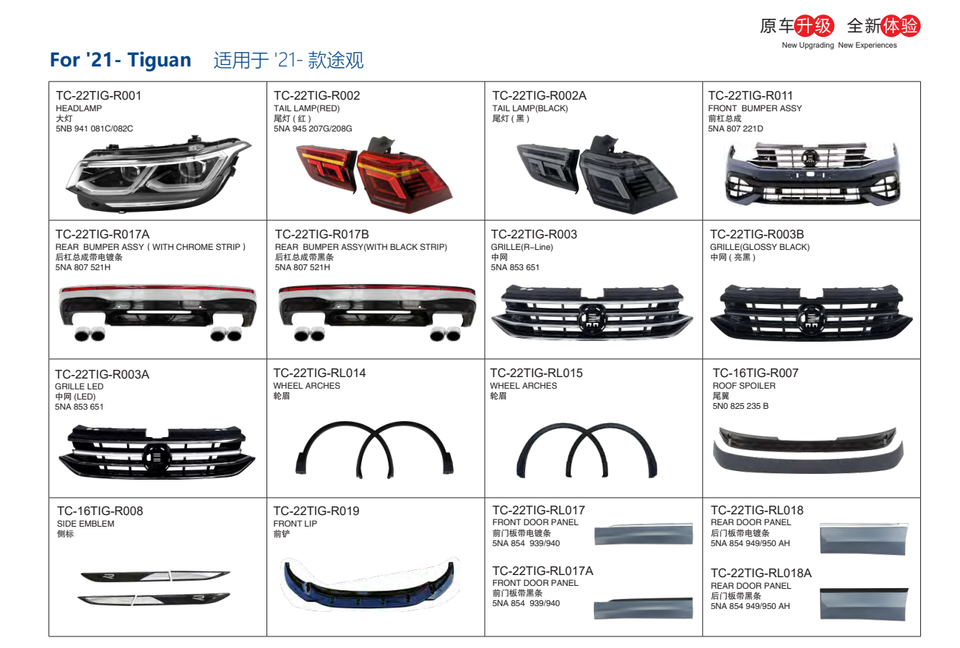 Kit de carrocería completo BUMPER ASSY, faldones laterales de rejilla de parachoques delantero y trasero, difusor delantero y trasero para 2021 Tiguan R