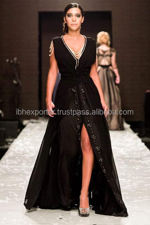 Frente negro completo abierto y sin mangas Kaftan mejor para ropa de fiesta en Dubai