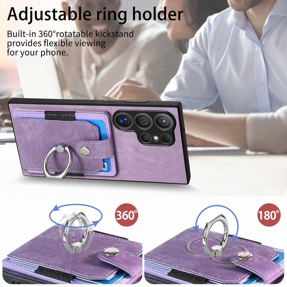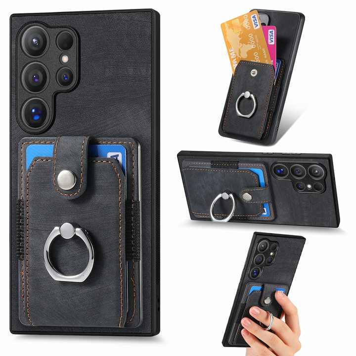 Funda Protectora de Cuerpo Completo con Anillo y Tarjetero para Samsung S26 Ultra S25 FE A56 M56, Cubierta de Cuero PU Grabado