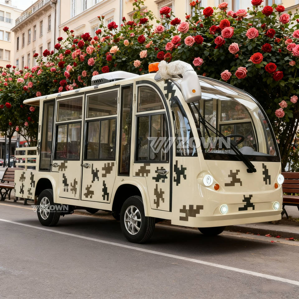 Autobús turístico eléctrico completamente cerrado, coche turístico de 14 plazas con Batería de 60V 100AH y garantía de 2 años para uso en jardines temáticos