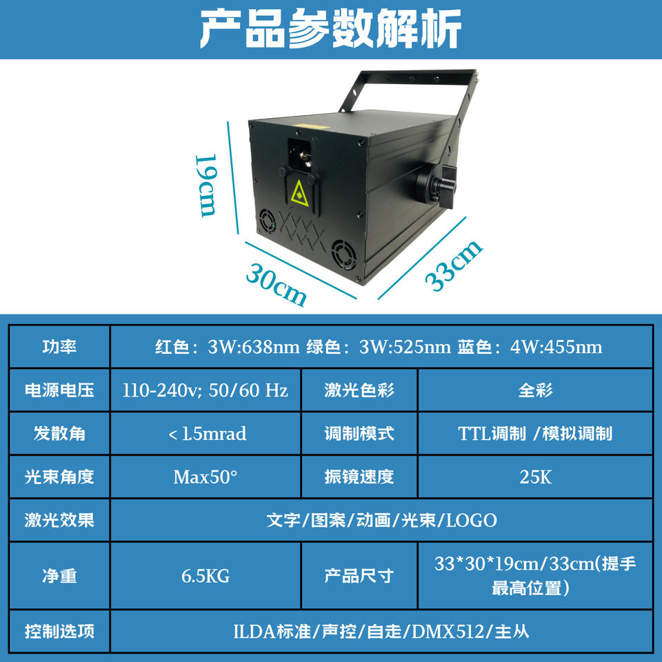 Luz Láser Animada a Todo Color de 12W 15W de Alta Potencia para Bodas, Discotecas, Conciertos y Eventos al Aire Libre