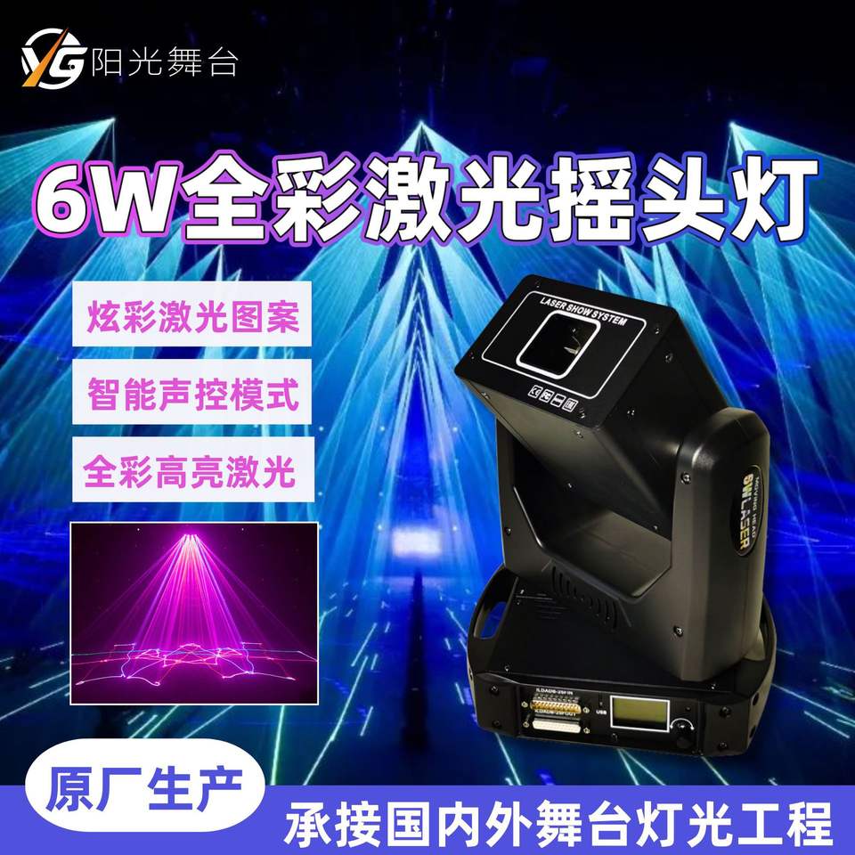 Luz Láser Animada a Todo Color de 6W, Cabezal Móvil con Haz de Luz, Escaneo de Líneas, Iluminación para Discotecas, Bares y Escenarios Interiores
