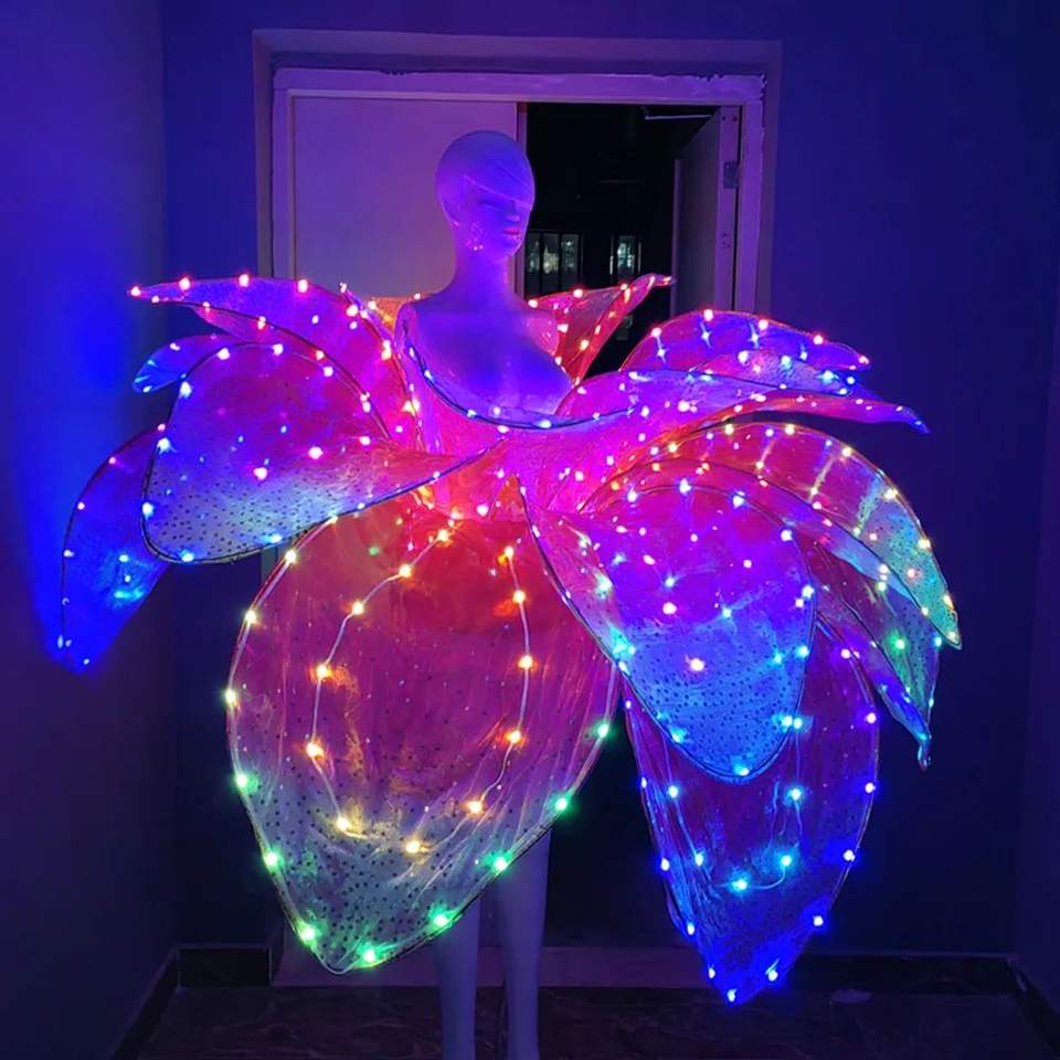 Traje LED de robot con falda de pétalos LED a todo color, vestido de gran vuelo para danza floral, ropa para espectáculos de danza moderna