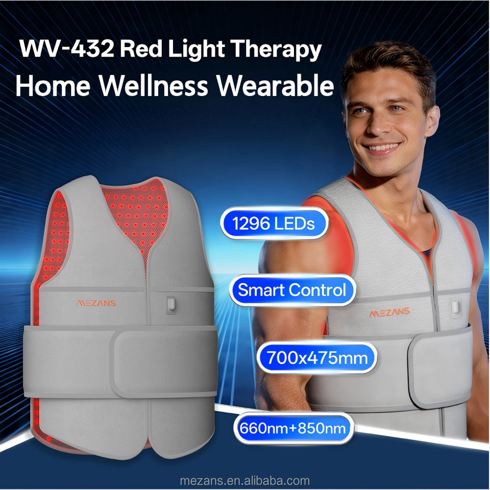 Chaleco de Protección Completa con Luz Roja, 700 mm de Ancho, 432 LED, Temporizador de Pulso de 3 Velocidades Ajustable, Regalo Familiar para Padres y Seres Queridos