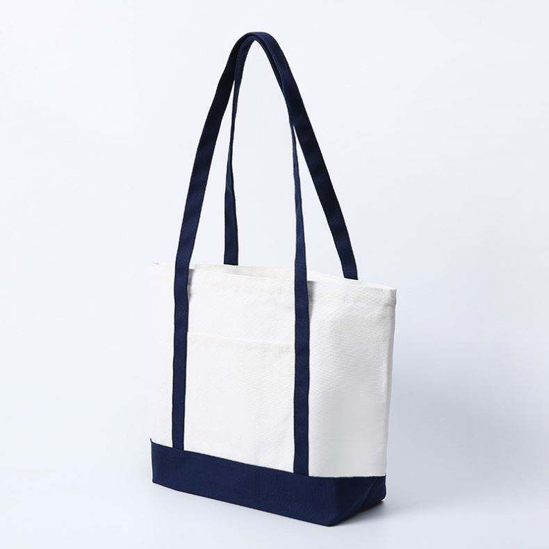 Totalmente personalizado respetuoso con el medio ambiente de color a juego de algodón bolsa de asas reutilizable bolsa de compras con bolsillo