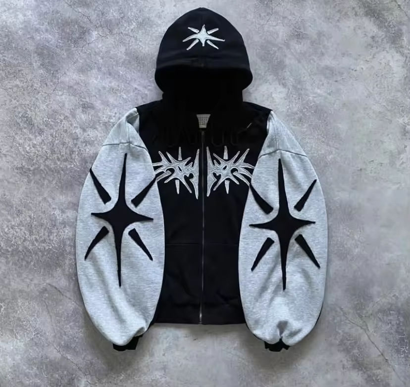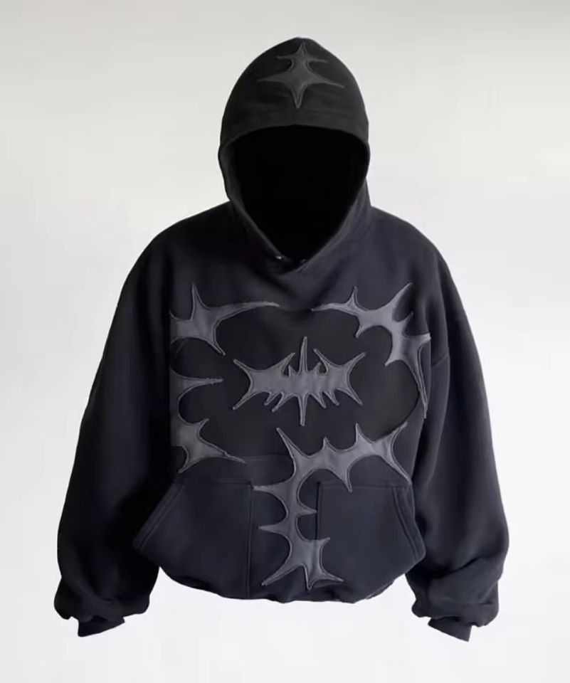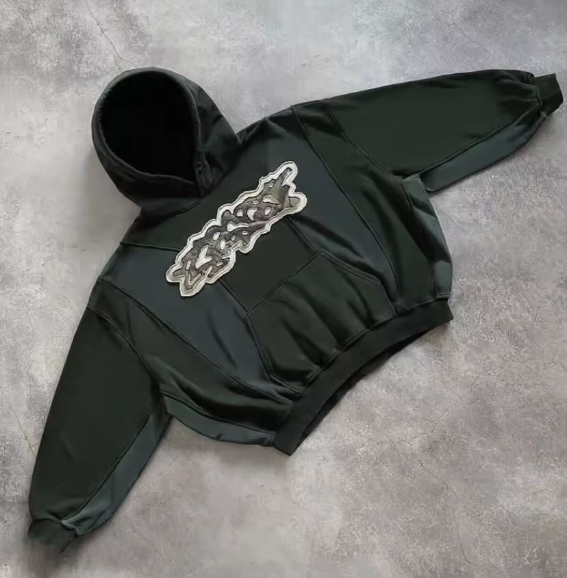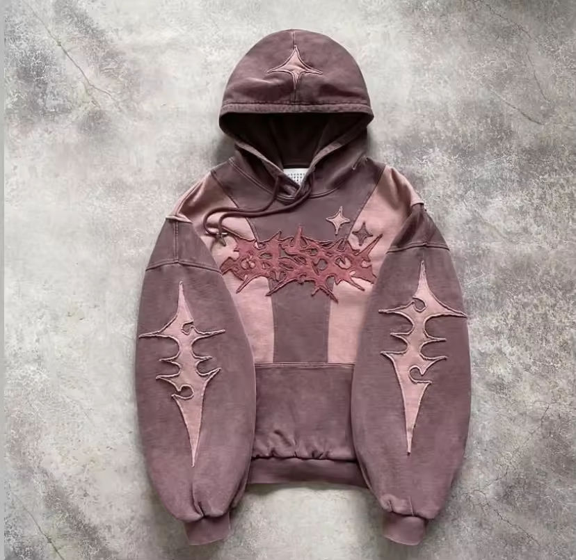 Sudadera con Capucha Personalizada de Algodón Peinado Puro, Sin Cordón, con Parches Desgastados, Estilo Vintage y Lavado Ácido