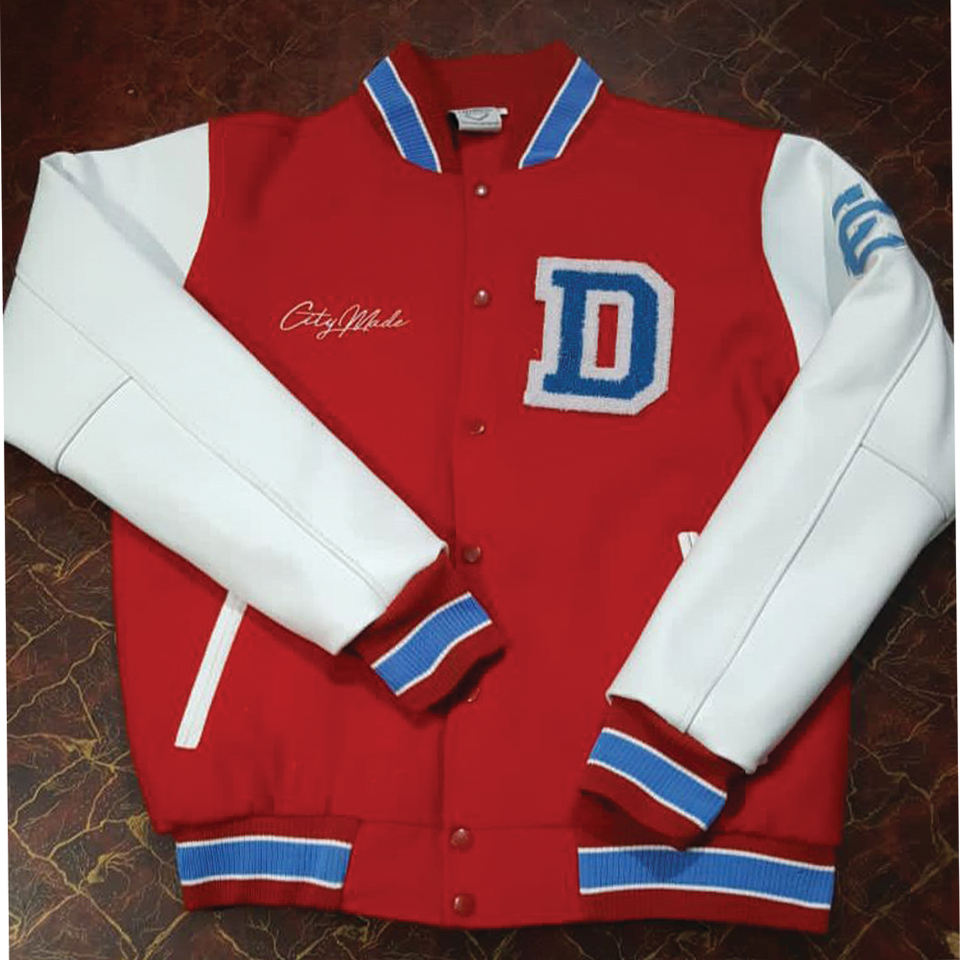 Mangas de cuero de lana personalizadas para hombre, chaqueta de equipo universitario con parche de canal, bordado de trabajo, bajo precio, hecho en Pakistán