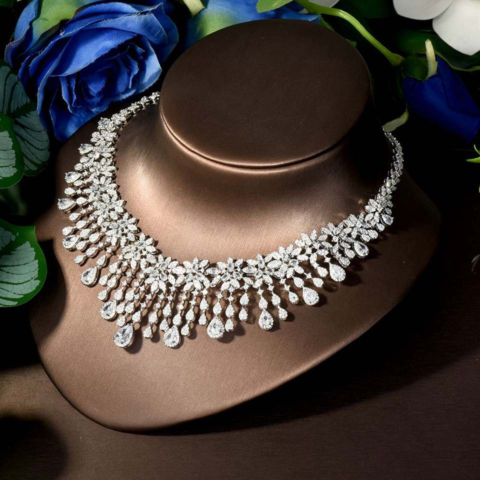 Collar completo de flores de glicinia translúcidas de hielo con diamantes, conjunto de joyería fina, accesorios para vestido de fiesta de Boda nupcial,