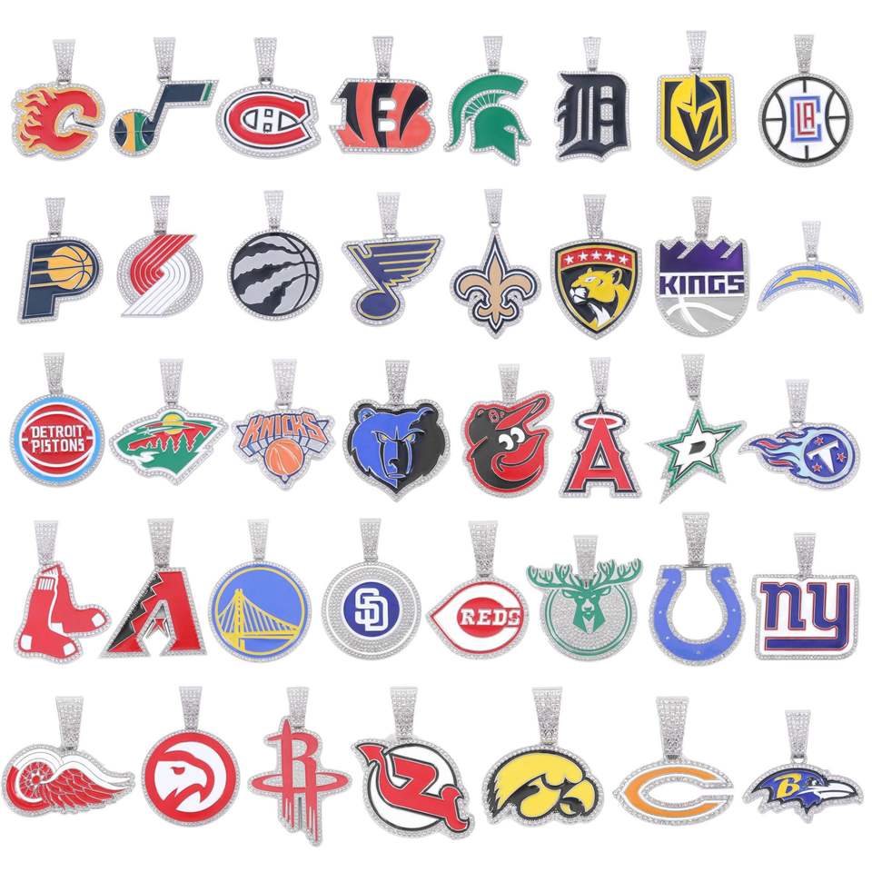 Collar de Aleación con Colgante de Equipo de Rugby con Diamantes Completos para Hombre y Cadena Cubana de 13 mm