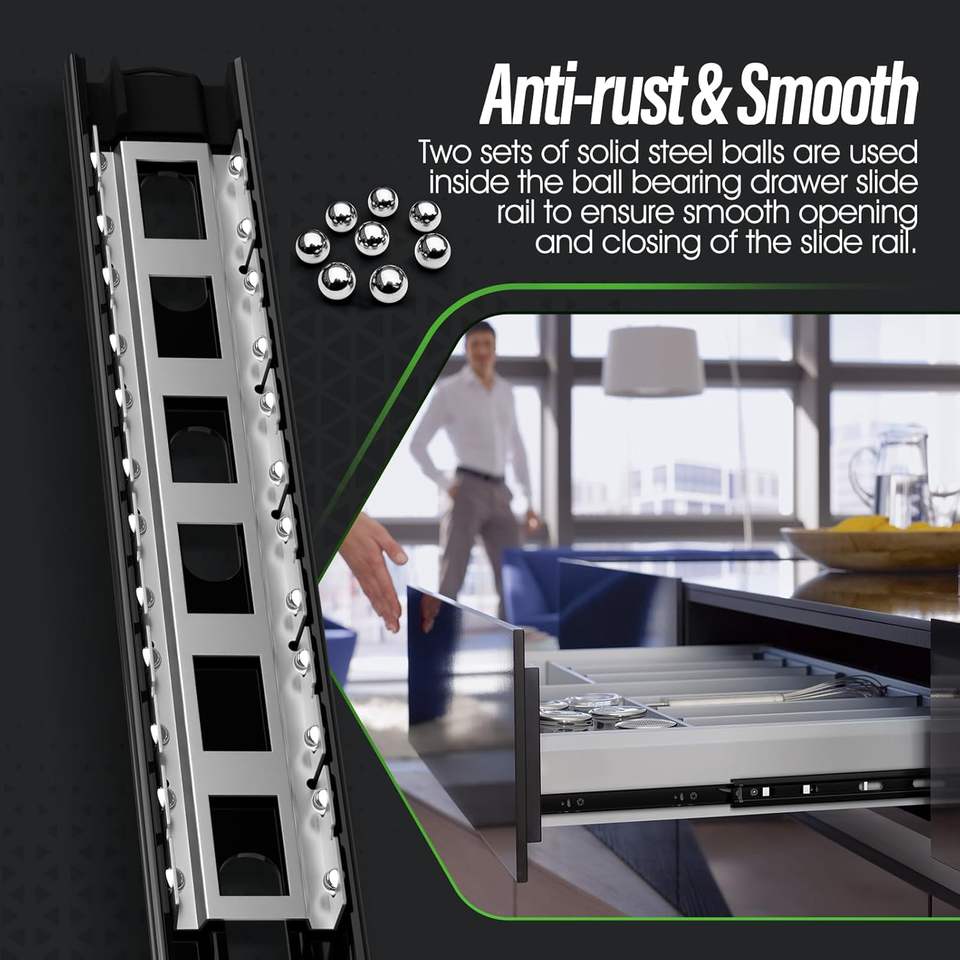 Extensión completa 45mm Hoja de acero galvanizado Montaje lateral Telescópico Cierre suave Bloqueo telescópico Diapositiva de cajón de servicio pesado