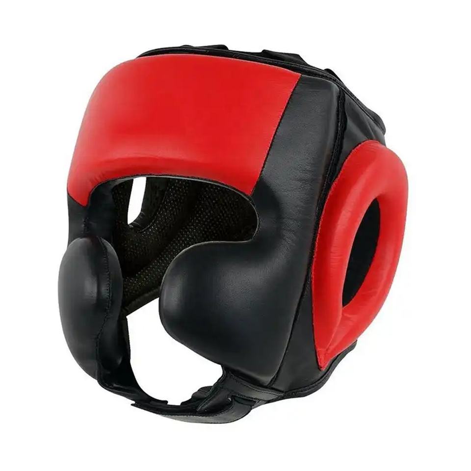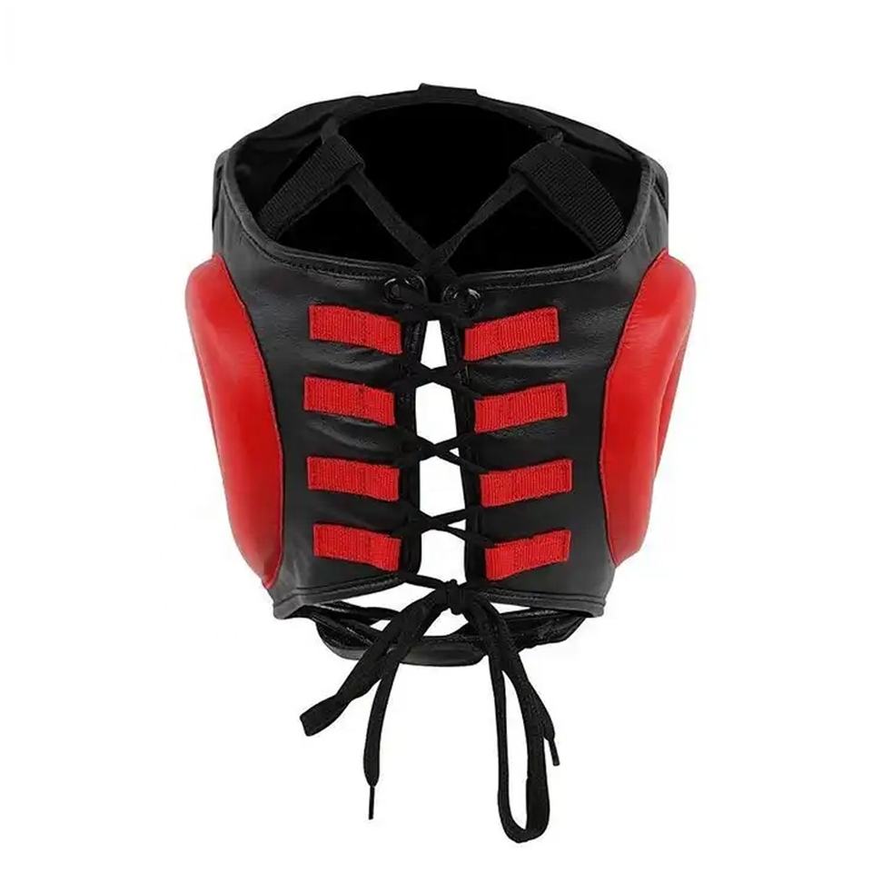 Protectores de cabeza profesionales de kickboxing de la mejor calidad de cuero PU de retazos de color negro y rojo con logotipo personalizado de último diseño integral