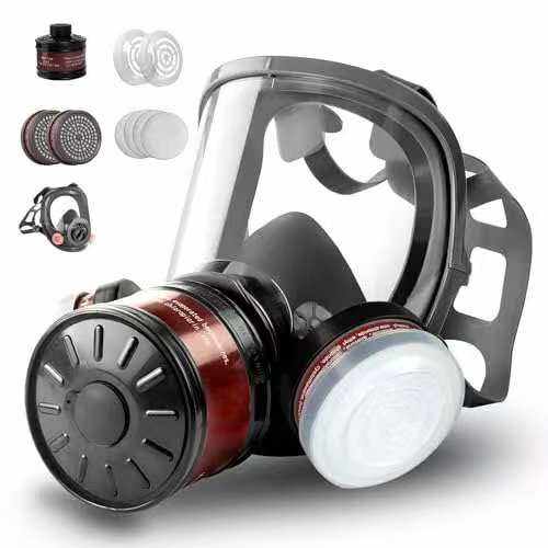 Máscara de Gas Reutilizable de Cara Completa con Doble Filtro de Protección, Máscara Facial Esférica de Silicona para Bomberos, Máscara de Gas de Seguridad