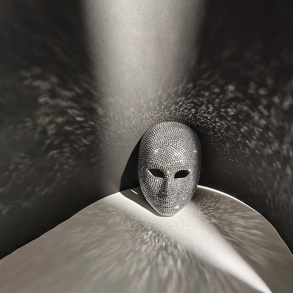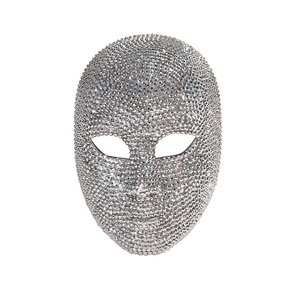 Máscara de diamante con diseño de rostro humano.