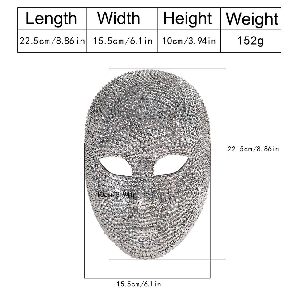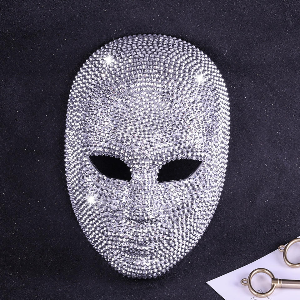 Máscara de diamantes de imitación para toda la cara, máscara de plástico brillante para fiestas, conciertos y accesorios de moda