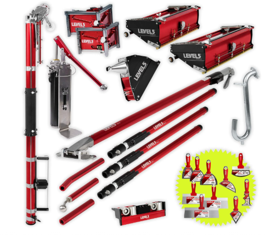 Juego Completo de Herramientas para Paneles de Yeso + Mangos Extensibles - LEVEL5 | Calidad Profesional | Rodillo de Esquina Automático para Cajas Planas 10/12