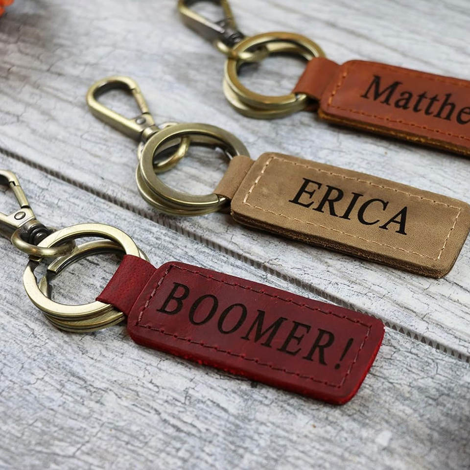 Llavero de cuero de grano completo Accesorio diario atemporal Llavero de cuero suave con detalle cosido