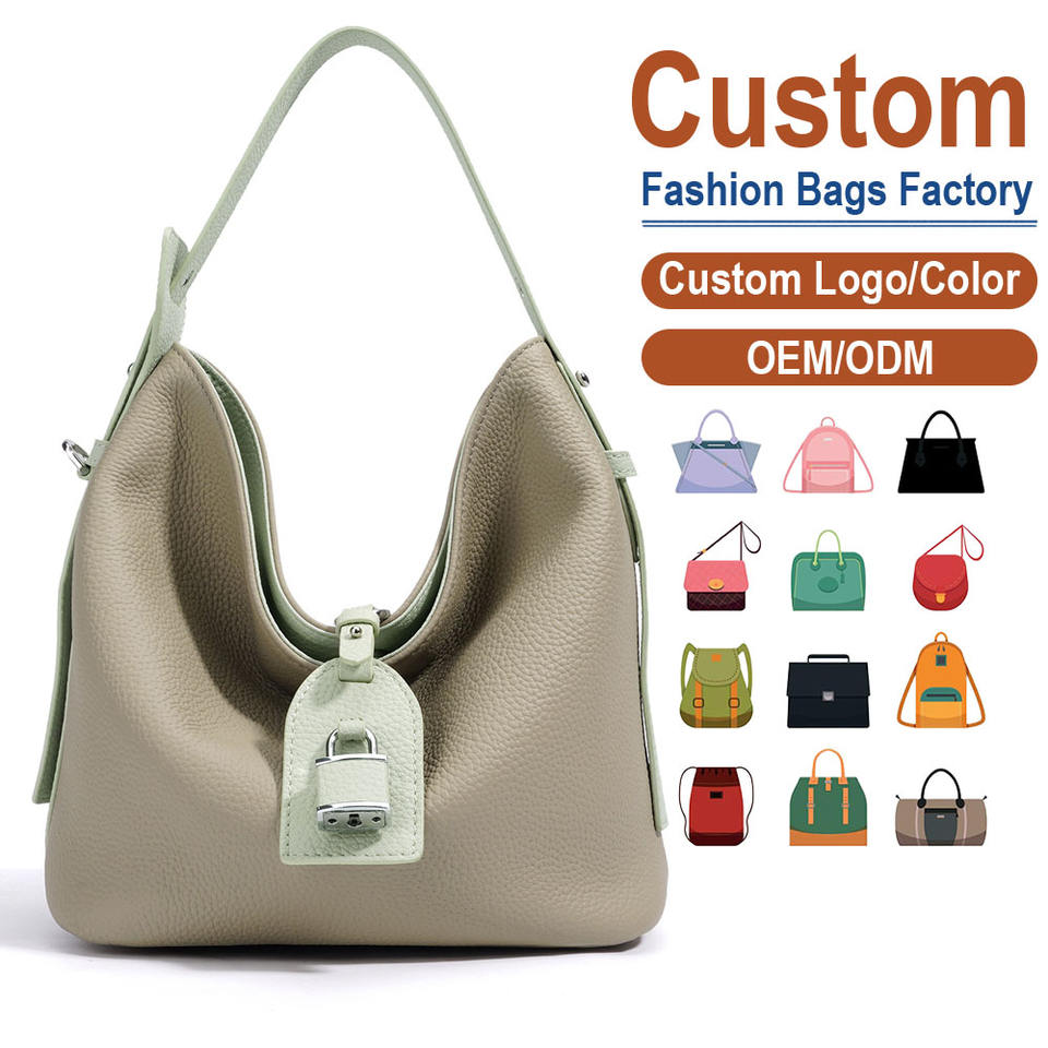 Bolso de Hombro de Cuero de Grano Completo con Etiqueta de Cuero Estilo Mini Lock, Cierre Magnético Oculto, Silueta Suave y Drapeada, Logotipo Personalizado Disponible