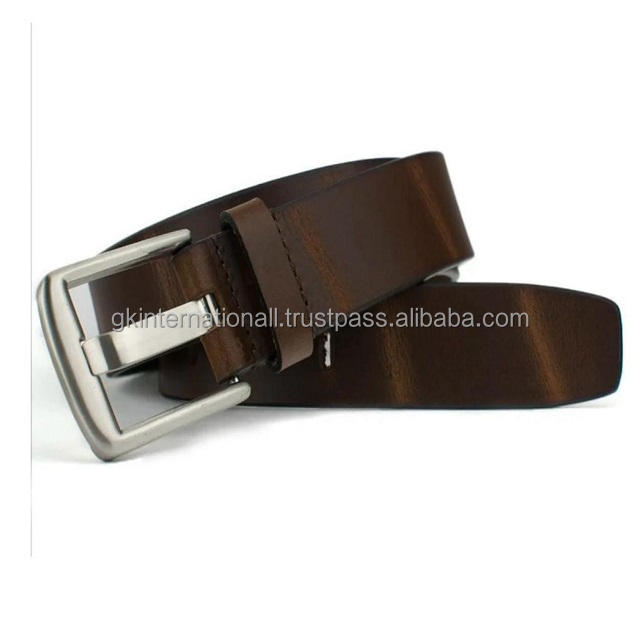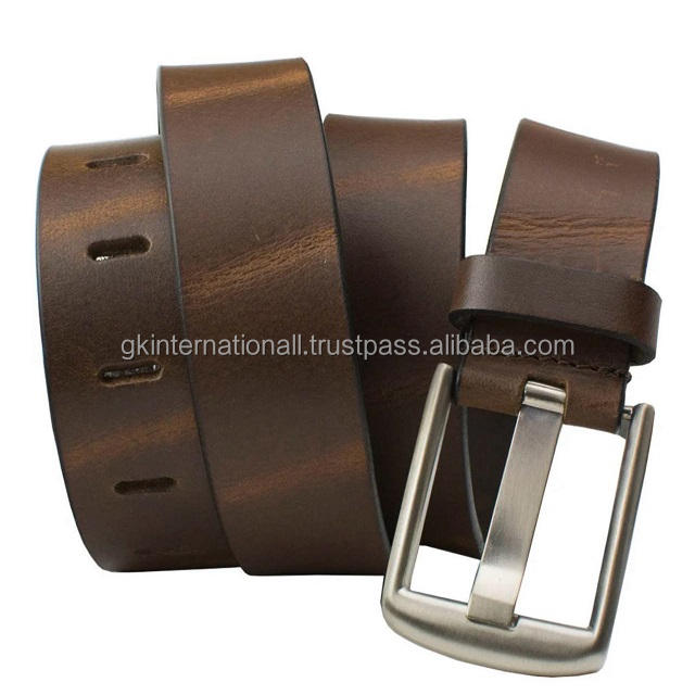 Cinturón informal de cuero de moda para hombre de aspecto vintage de una sola capa sólida de grano completo con hebilla de metal de aleación elegante tamaños personalizados