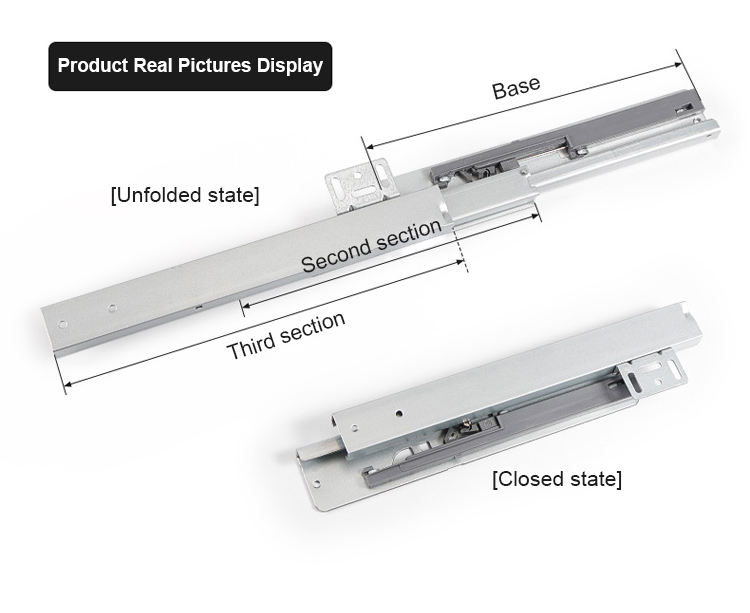 Guías completas Tiradores de corredor Mecanismo de cocina Gabinete de extensión Telescópico Cierre suave Undermount Armario Cajón Diapositivas Riel deslizante