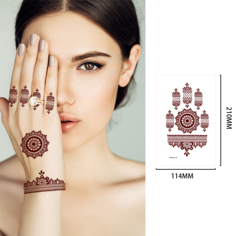 Pegatinas de tatuaje temporal de Henna roja de mano completa para mujeres tintas a prueba de agua con diseños de tatuaje de Henna