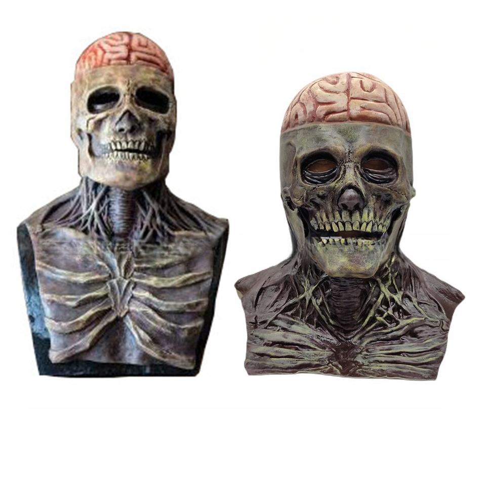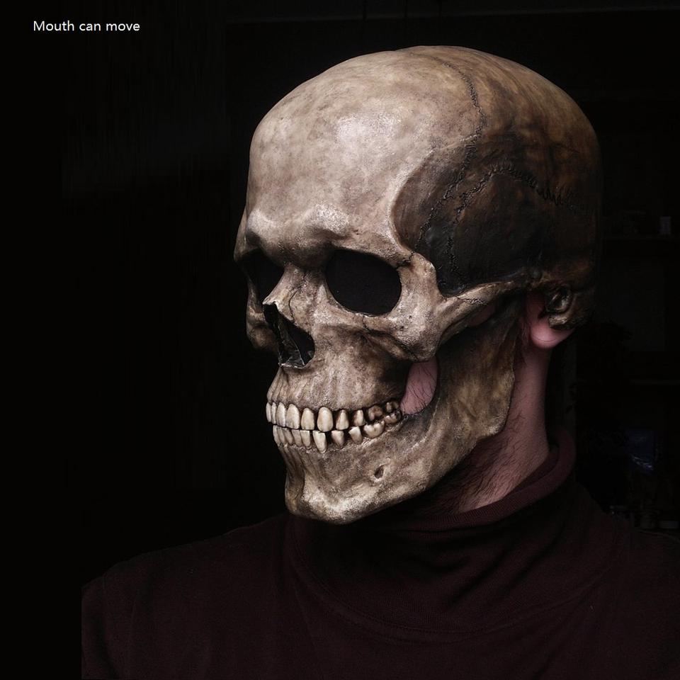 Máscara de calavera de cabeza completa con mandíbula móvil Máscara de miedo de Halloween Cabeza Máscara de látex realista Disfraces Accesorios