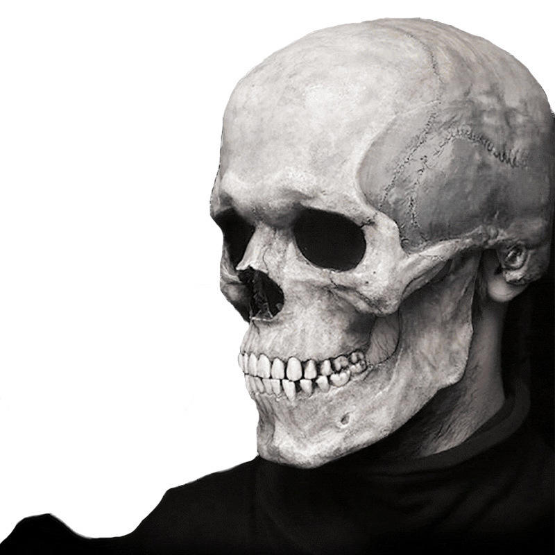 Mascarilla de cabeza completa con mandíbula móvil para hombre, máscara de látex con cabeza escalofriante, realista, con esqueleto, para Halloween