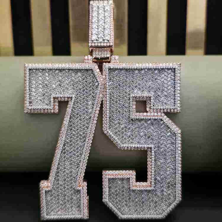 Colgante de Moissanita Hip Hop DOPE JEWELLS con Número 75 Totalmente Cubierto de Piedras, 45.89 CT, de Latón, Unisex, 173.5 GM, para Cada Ocasión