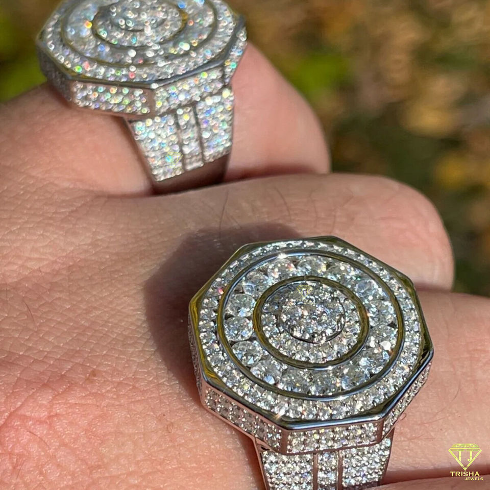 Anillo de diseño en espiral de laboratorio completo para hombre en plata de ley 925, anillo ostentoso Octágono de Hip Hop, joyería personalizada de lujo